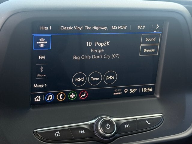 - Audio system, Chevrolet Infotainment 3 system, 7" diagonal color touchscreen, AM/FM stereo. Additional features for compatible phones include: Bluetooth® audio streaming for 2 active devices, voice command pass-through to phone, Apple CarPlay and Android Auto capable.